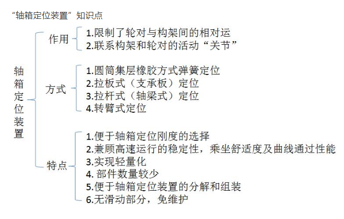 1、動車組轉(zhuǎn)向架中軸箱定位裝置限制了輪對與構(gòu)架間的相對運動。
