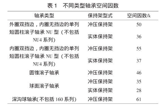 軸承內(nèi)部空間V的計(jì)算公式:V=Mk(CM3)
