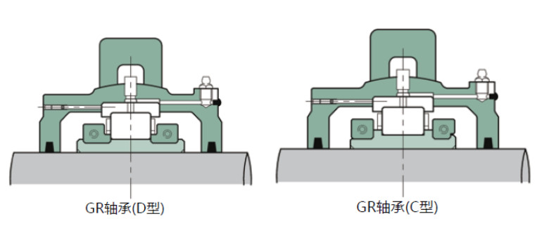 固定端用剖分軸承GR型外圈是帶雙擋邊的;內圈組件安裝后,外帶的擋圈或夾緊環就相當于是內圈的擋邊。