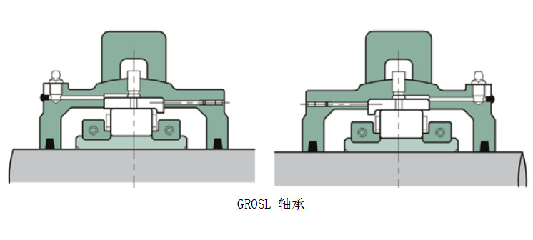 如果需要更大的軸向游隙,可以采用GROSL軸承。這種軸承的外圈是單擋邊,只能在一個方向上定位。采用兩個方向相對的單擋邊軸承配置,可以達到雙向定位的目的。GROSL軸承的外形尺寸和標準GR、EX軸承一樣,但可以達到更大的軸向位移。軸承在正常位置運行時,內圈與外圈之間可以有一個輕微的偏離。