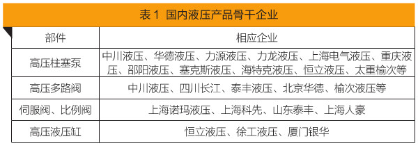 據液氣密協會統計,目前國內液壓企業超過1000家,其中有一定規模企業300多家,主要企業100多家。其中,恒立液壓、中川液壓和太重榆液等骨干企業正快速縮短與全球領先技術的差距,實現高端液壓泵閥產品的突破。國內液壓骨干企業產品如表1所示。
