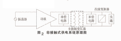 非接觸式供電系統(tǒng)工作時,初級變換器將交流電壓經(jīng)過整流、逆變轉(zhuǎn)換成高頻交流電流供給初級繞組。初級繞組通過空間耦合的方式把能量耦合到次級繞組,次級繞組輸出的是高頻電流,根據(jù)后級負載特性以及電路系統(tǒng)的工作要求,次級變換器將接收到的信號進行整流、濾波等處理,Z終輸出直流電壓給負載供電。齒輪軸承溫度遙測系統(tǒng)中非接觸式供電系統(tǒng)原理見圖2。