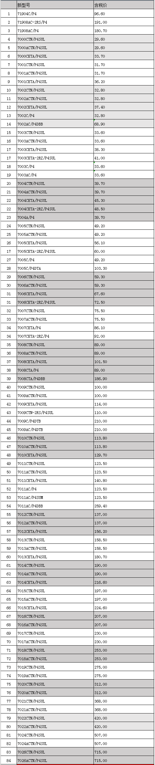 浙江萬眾精密軸承制造有限公司 P4級 資源表(型號+價格)